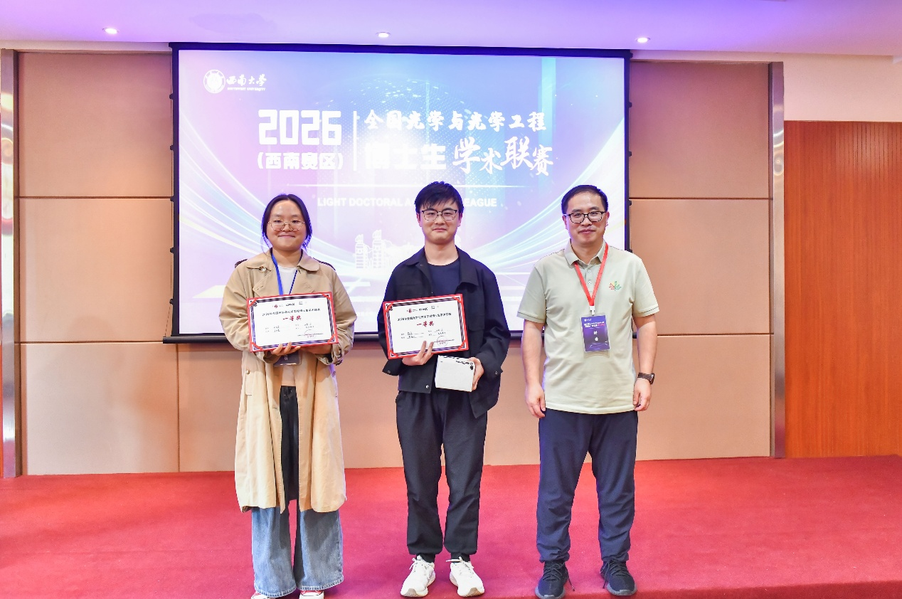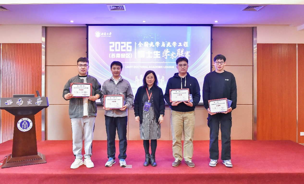 我院学子在比赛中表现优异,其中博士生陈敬、张煜青、王秋蘋、赵乐涵入围全国光学与光学工程博士生学术联赛国赛。另有多名硕、博士生获得优秀奖、优秀海报奖,西南大学获评优秀组织奖。