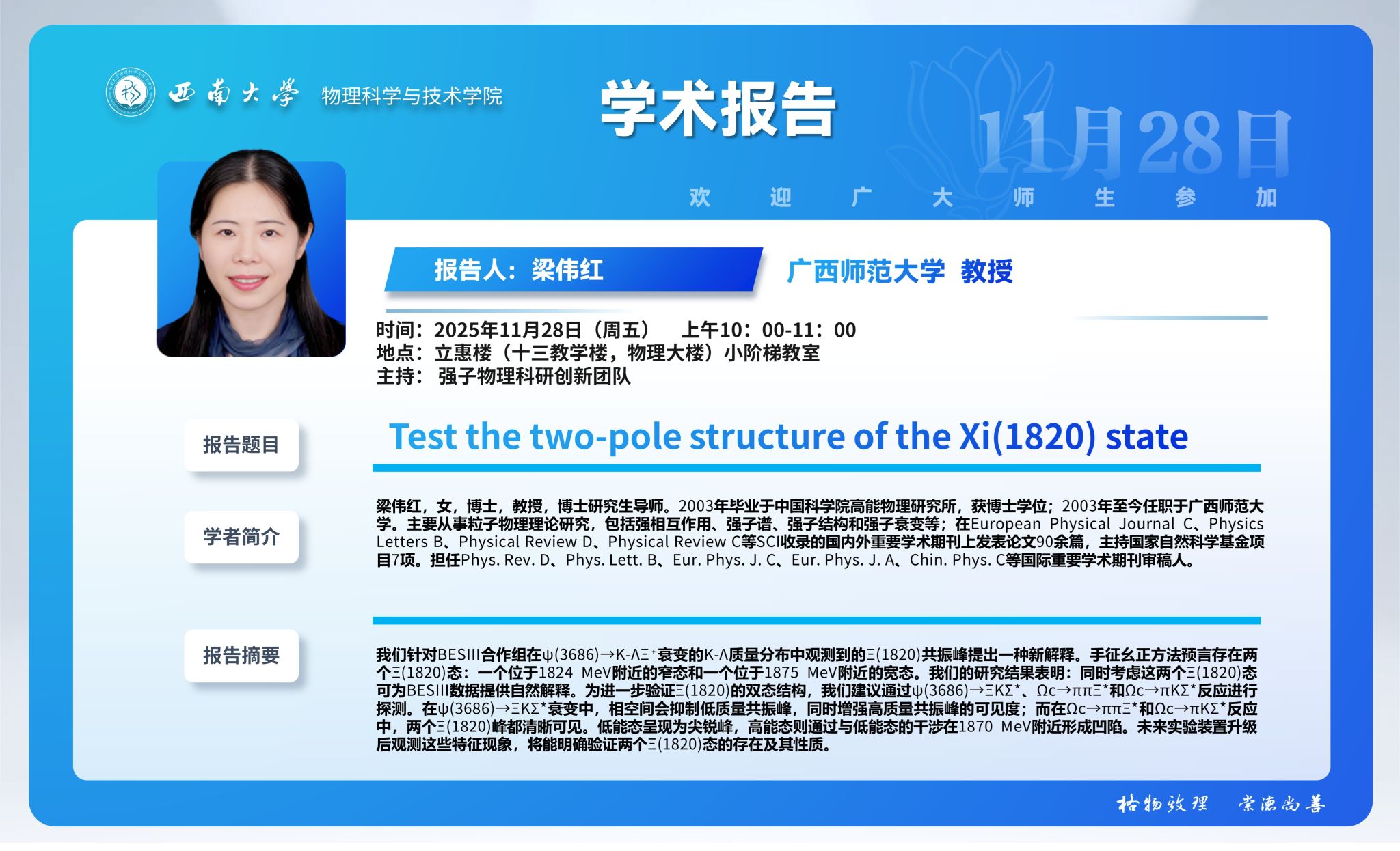 【学术报告】Test the two-pole structure of the Xi(1820) state
